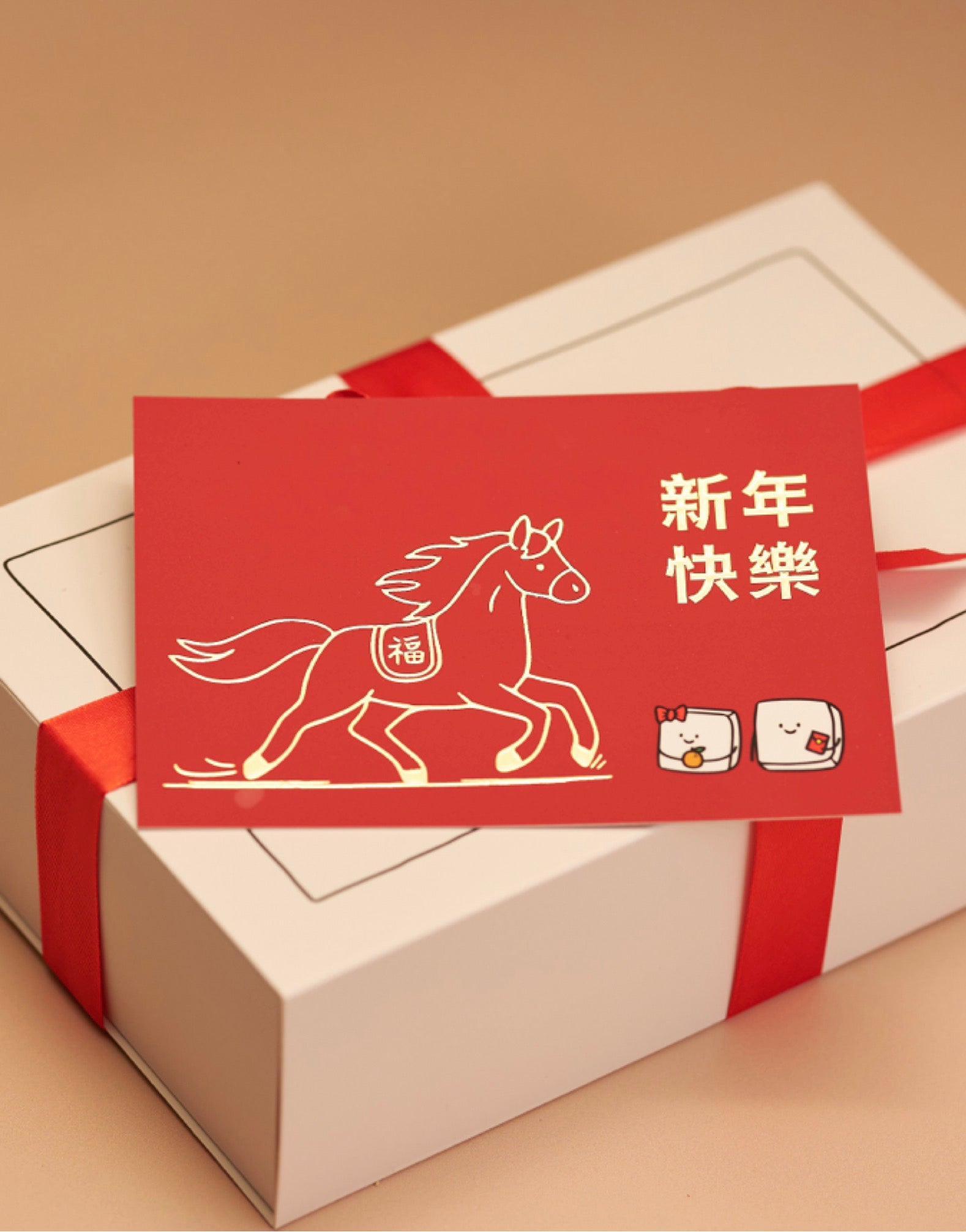 Design a personal card with Snowcubes. Pick a design, write your note — we'll ribbon the box and set your card right on top.
